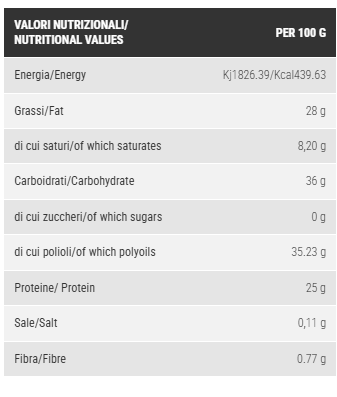 ingredienti:Maltitolo, oli vegetali (burro di karitè, girasole, burro di cacao, cartamo) proteine del siero del latte isolate, cacao magro in polvere, soia isolato proteico, nocciole (5%), emulsionante: lecitina di sola, aromi. Dose giornaliera consigliata: 25g.