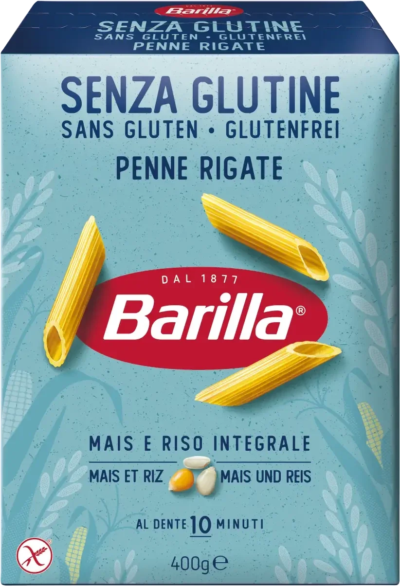 Rinunciare al glutine non significa rinunciare al piacere della pasta! Le Penne Rigate Senza Glutine Barilla sposano il tradizionale taglio obliquo "a pennino" con un gusto bilanciato e sono ideali con sughi dai sapori delicati. Grazie alla nuova ricetta con riso integrale, da oggi le Penne Rigate Senza Glutine offrono un gusto ancora più armonioso e bilanciato, per una pasta Senza Glutine finalmente buona come la Barilla di sempre.