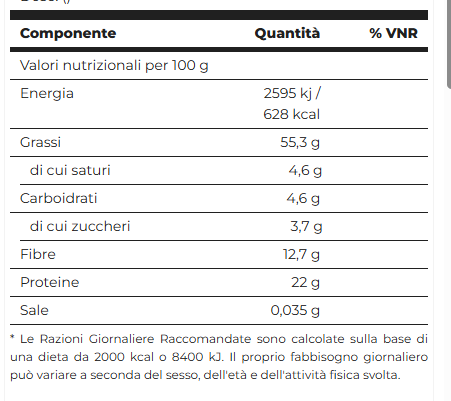 - SENZA SALE E SENZA ZUCCHERI AGGIUNTI.